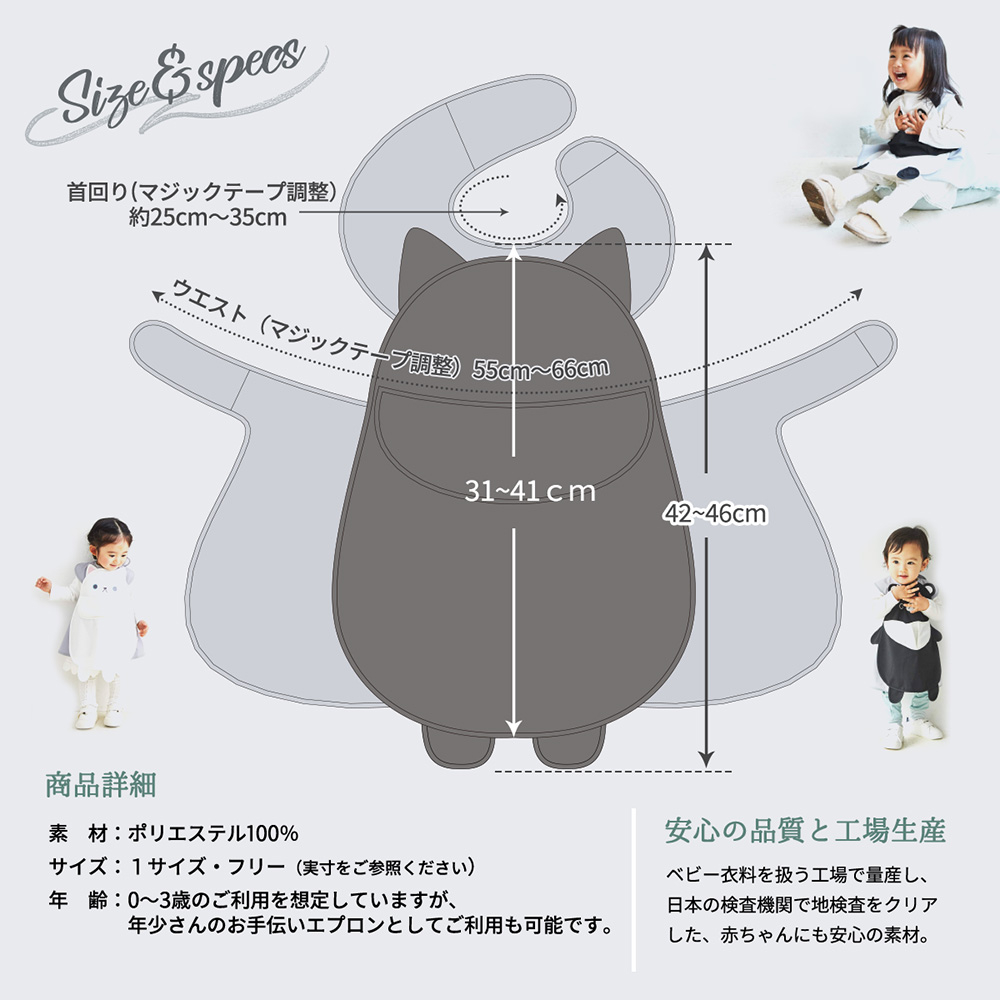 適用年齡:0–3 歲為主要使用對象;也可作為年幼孩童的幫手圍裙使用(陪做家事、手作等)。