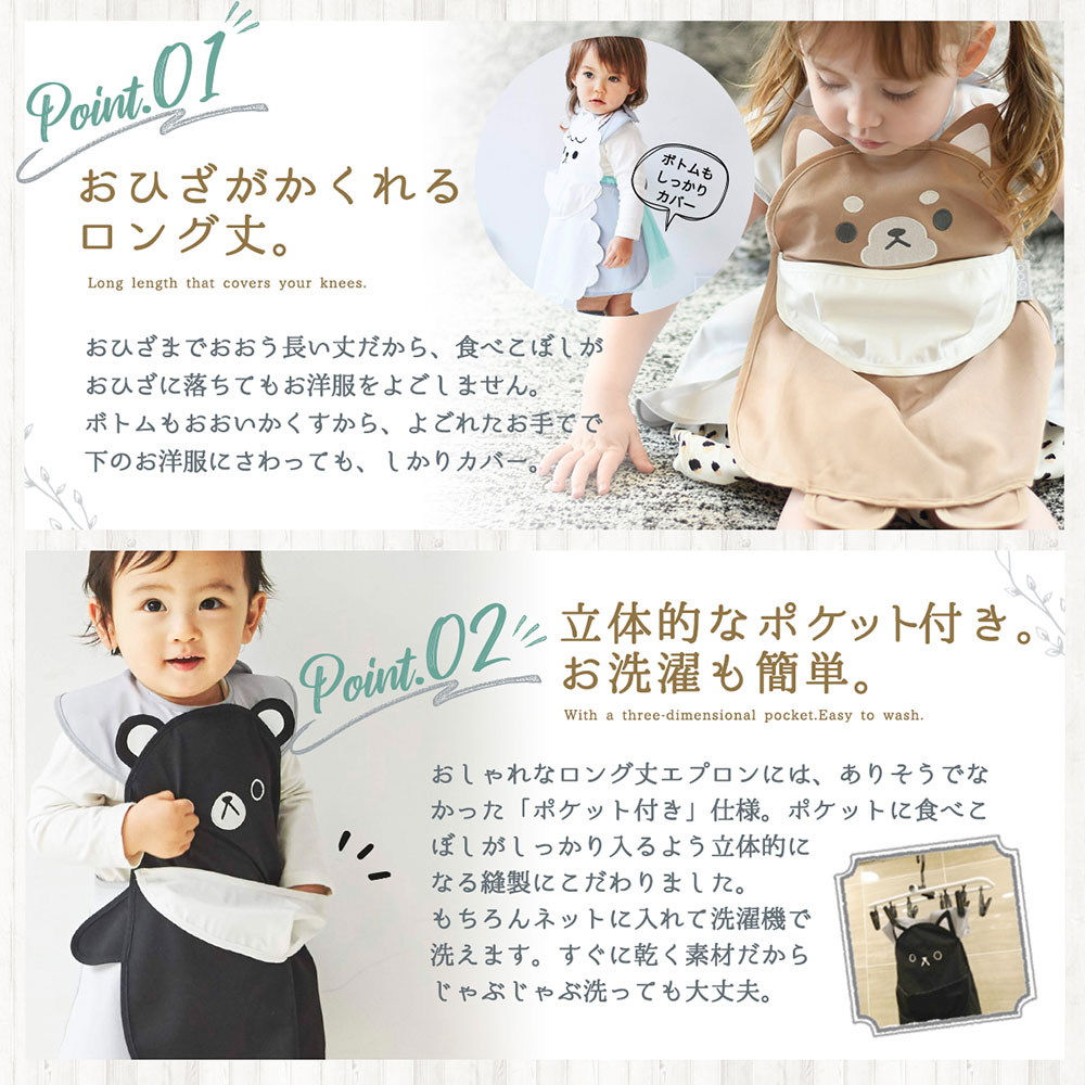 日本aboo 以「如果能有這樣就好了」的育兒靈感為出發點,做出連平常不愛穿圍兜的孩子也願意穿上的款式:長版 A 字版型+立體集屑口袋+柔軟親膚材質,輕盈不悶、穿脫超簡單,拍照更是上鏡。