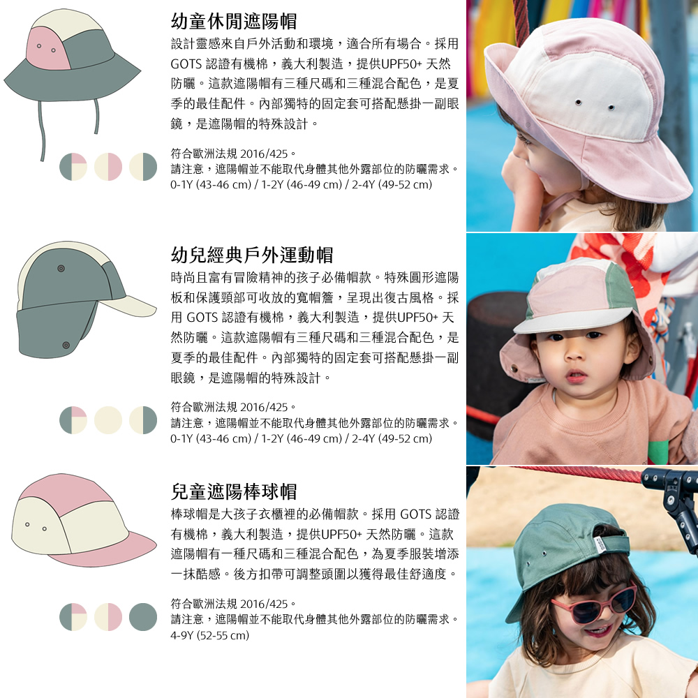 請注意,遮陽帽並不能取代身體其他外露部位的防曬需求。