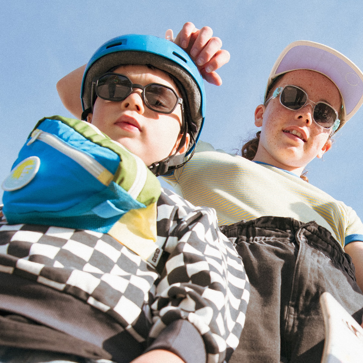 EYZZ 來自 ICONIK 系列,以俐落有型的六角鏡框為特色,為孩子打造兼具個性與實用性的太陽眼鏡款式。幾何線條中保留圓潤比例,不過於稜角,讓孩子配戴起來自然有型、不顯成熟,輕鬆展現屬於自己的風格態度。專為成長中的兒童臉型設計,提供 4–7 歲與 7–12 歲兩段尺寸選擇,無論是日常外出、學校活動或假日旅行,都能穩定貼合、不易滑落。