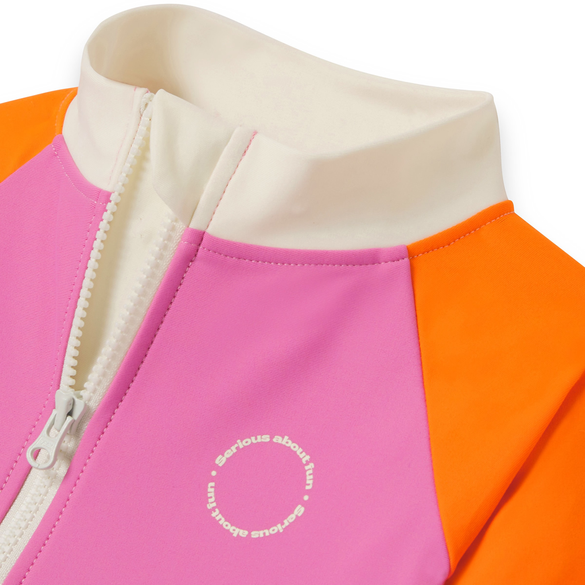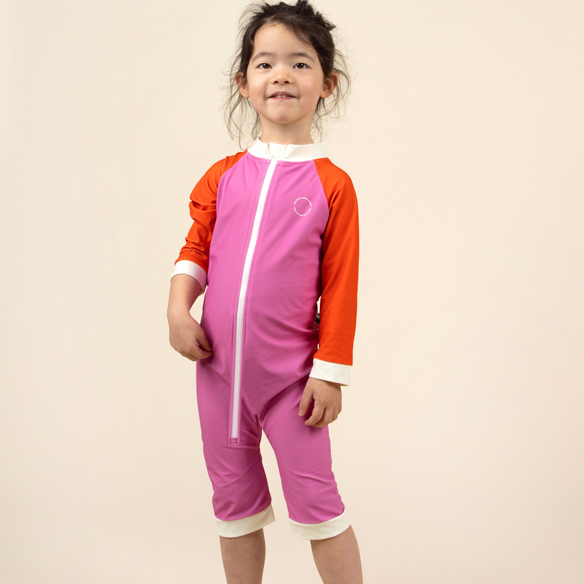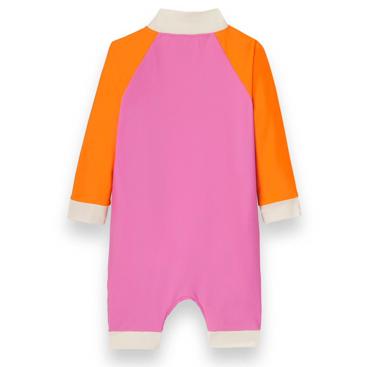 貼心的 全長拉鍊設計,從領口一路延伸至褲腳,穿脫快速省力,無論是在沙灘、泳池邊或更換尿布時都更加便利。內側標籤為 可剪式設計,不刮膚、不刺激,避免造成孩子不適,讓活動與玩水過程更加自在。