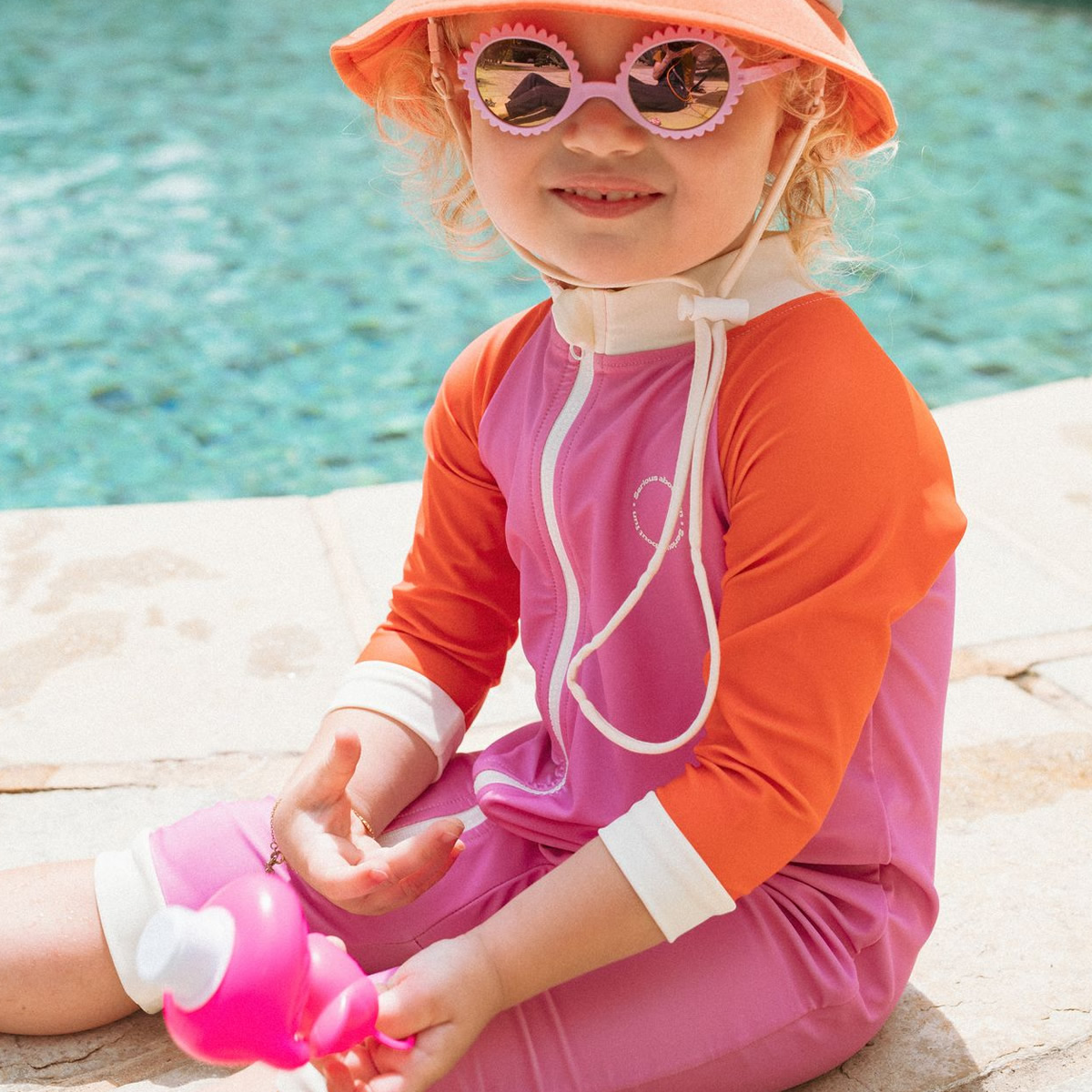 法國KiETLA ICONIK 幼童連身防曬泳衣(莓果粉橘)
