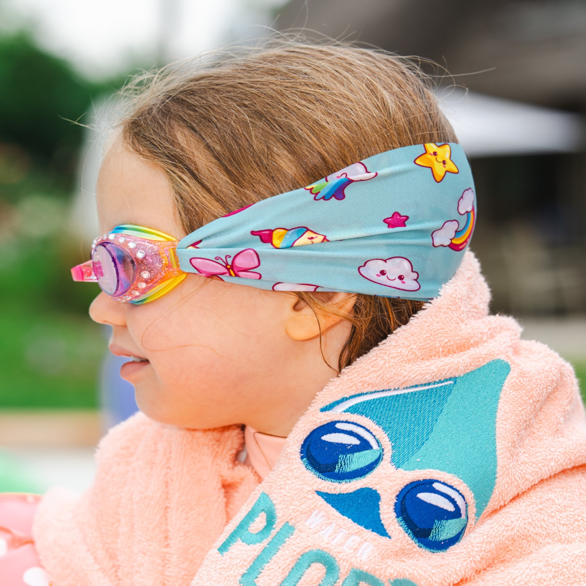 Waterplops 以柔軟彈性的布料作為核心設計,無論是濕髮或乾髮都能輕鬆佩戴,不會拉扯頭髮,也不會讓孩子感到不適。寶貝能自己戴上,也能在泳帽外穩定貼合、不易滑落,從第一堂游泳課開始就建立自在與安全感。