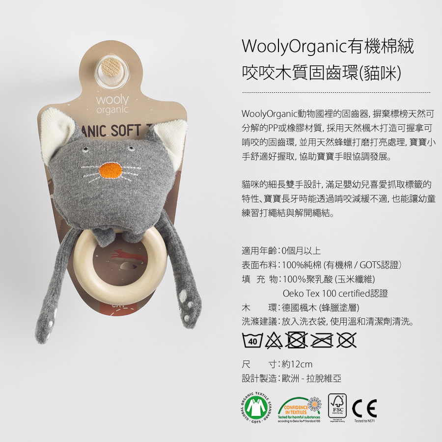 WoolyOrganic有機棉絨 咬咬木質固齒環(貓咪)