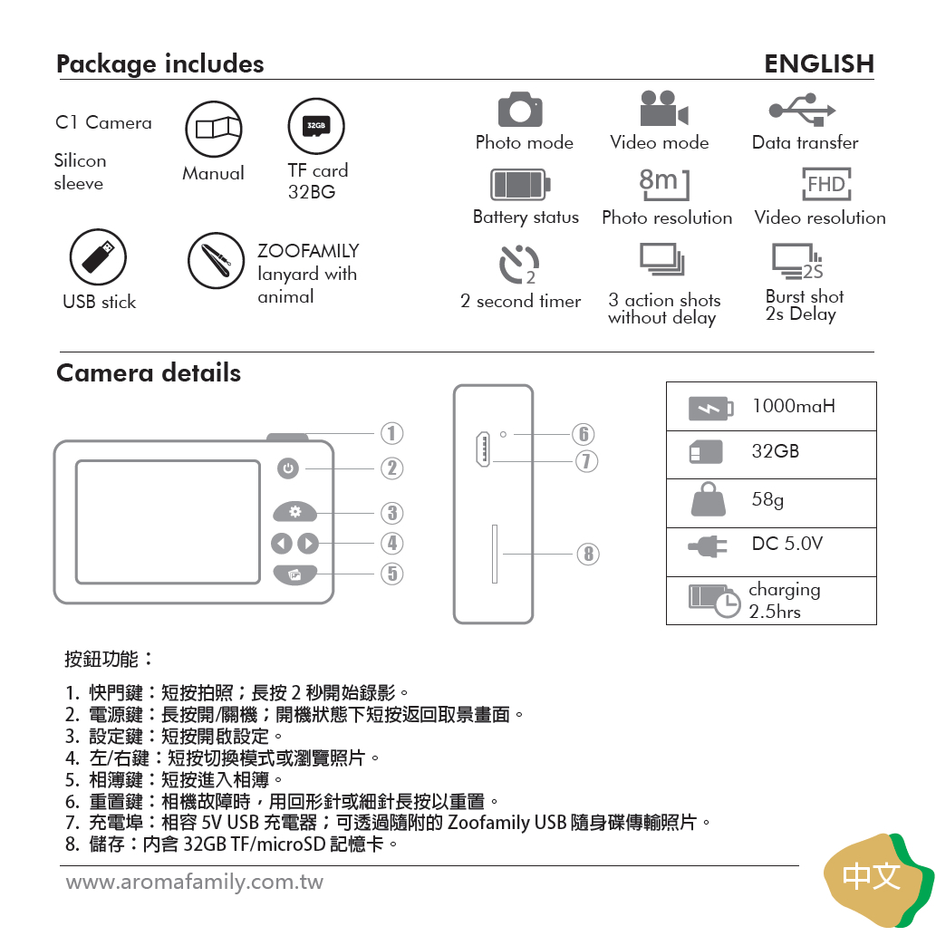 記憶卡:內附 32GB(可儲存約2000張照片或4小時影片)