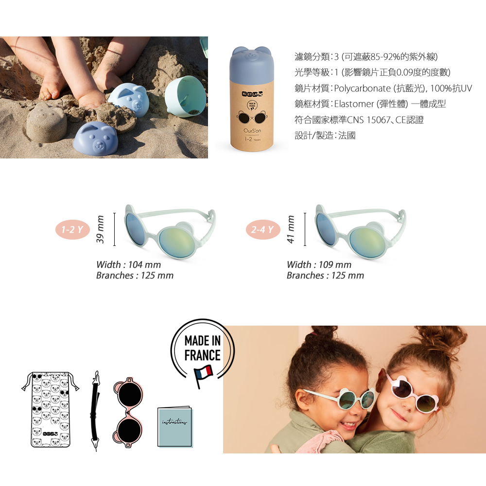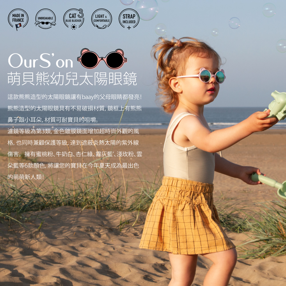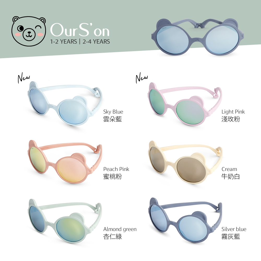 法國KiETLA OURS'ON萌貝熊幼兒太陽眼鏡(1-4Y 杏仁綠)